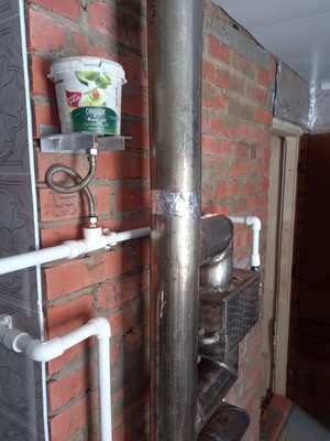 Основных варианта два. Первый: - можно получить энергию от отходящих газов (дыма). Для этого нужен эфективный теплообменник, который устанавливается в дымоход. При этом печь должна быть соответствующей мощности или помещение для отдыха должно быть не очень большим. Этот вариант испытан и дает очень хороший результат. Большим плюсом является то, что отходящий дым остывает и после теплообменника не представляет угрозы для потолка и кровли. Ведь у банной печи больше половины энергии улетает в небо и пожары не редкость.